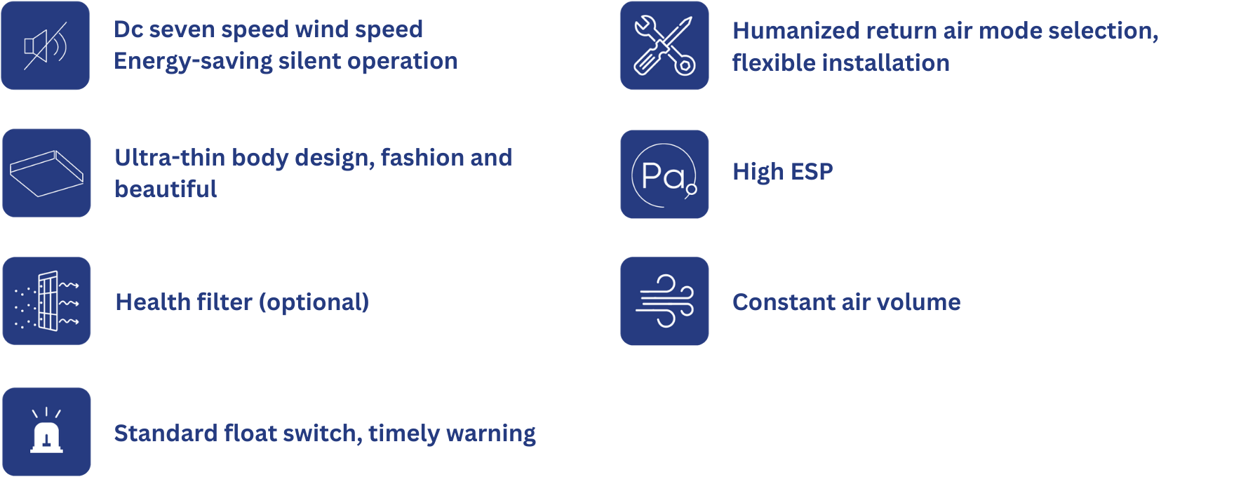 DC Slim Duct is an ultra-thin, quiet, and energy-efficient ducted air conditioning unit with constant air volume, high ESP, and optional health-enhancing filters.