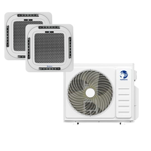 Cassette air conditioners are a modern solution for efficient and even cooling and heating of rooms. These units are compatible with NØRDIS multi-split outdoor units, providing maximum flexibility and comfort in several spaces simultaneously. Cassette air conditioners are the ideal choice for offices, hotels, restaurants and other spaces where efficient, unobtrusive and aesthetically pleasing air distribution is required. Not only do they create a cosy and comfortable environment, but they also help to save energy and protect the environment.