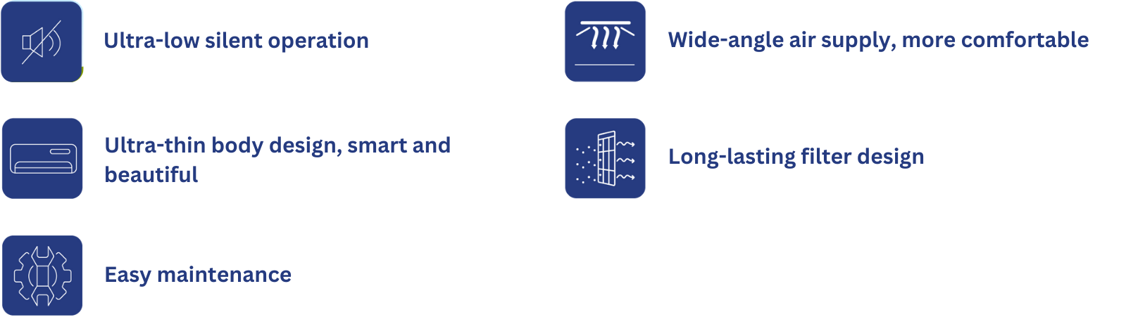 The panel swing motor system uses a highprecision stepper motor with an intelligent up-and-down control mechanism, enabling ultra-wide-angle and large-range air distribution.