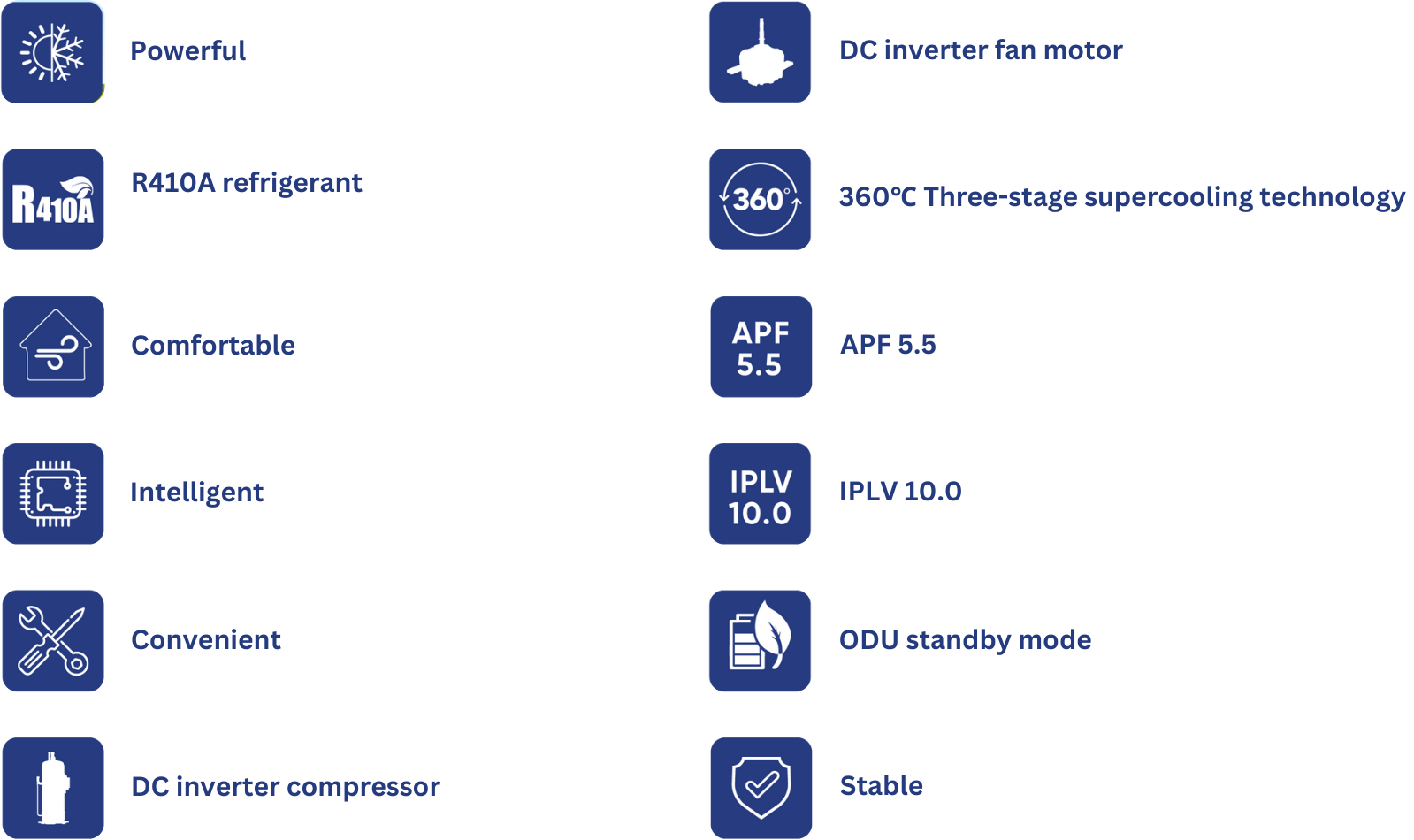 to +56°C – providing dependable cooling and heating throughout the year, regardless of seasonal or environmental conditions.